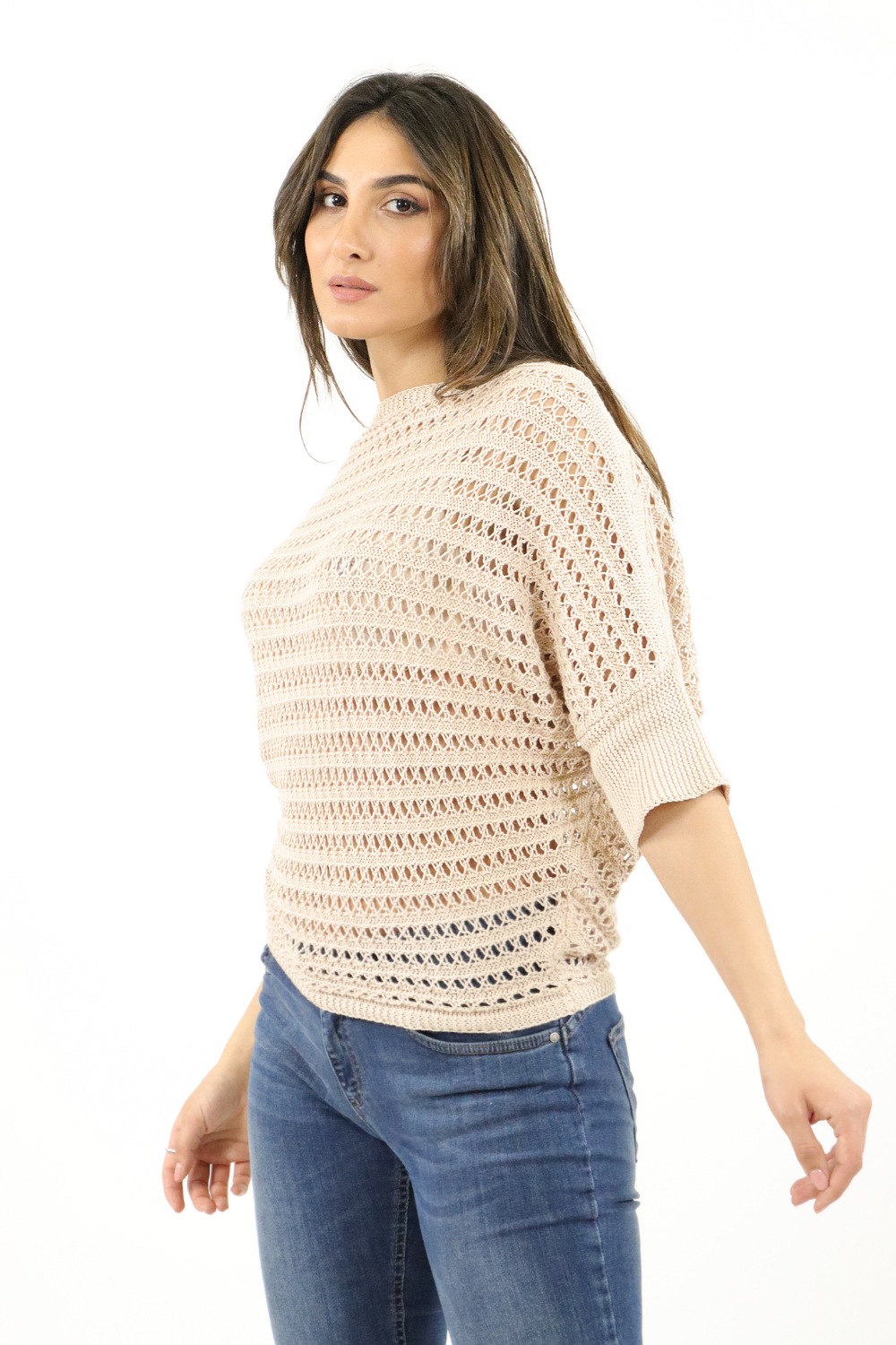 Maglia in Cotone con Lavorazione Traforata – Colore Beige