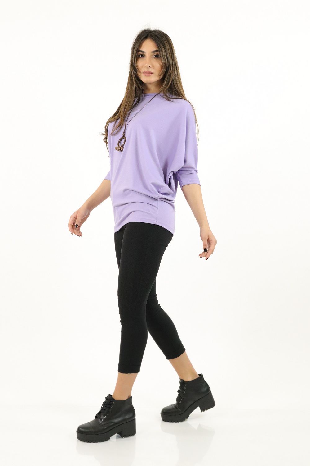 Maglia in Viscosa a Pipistrello con Collana – Colore Lilla