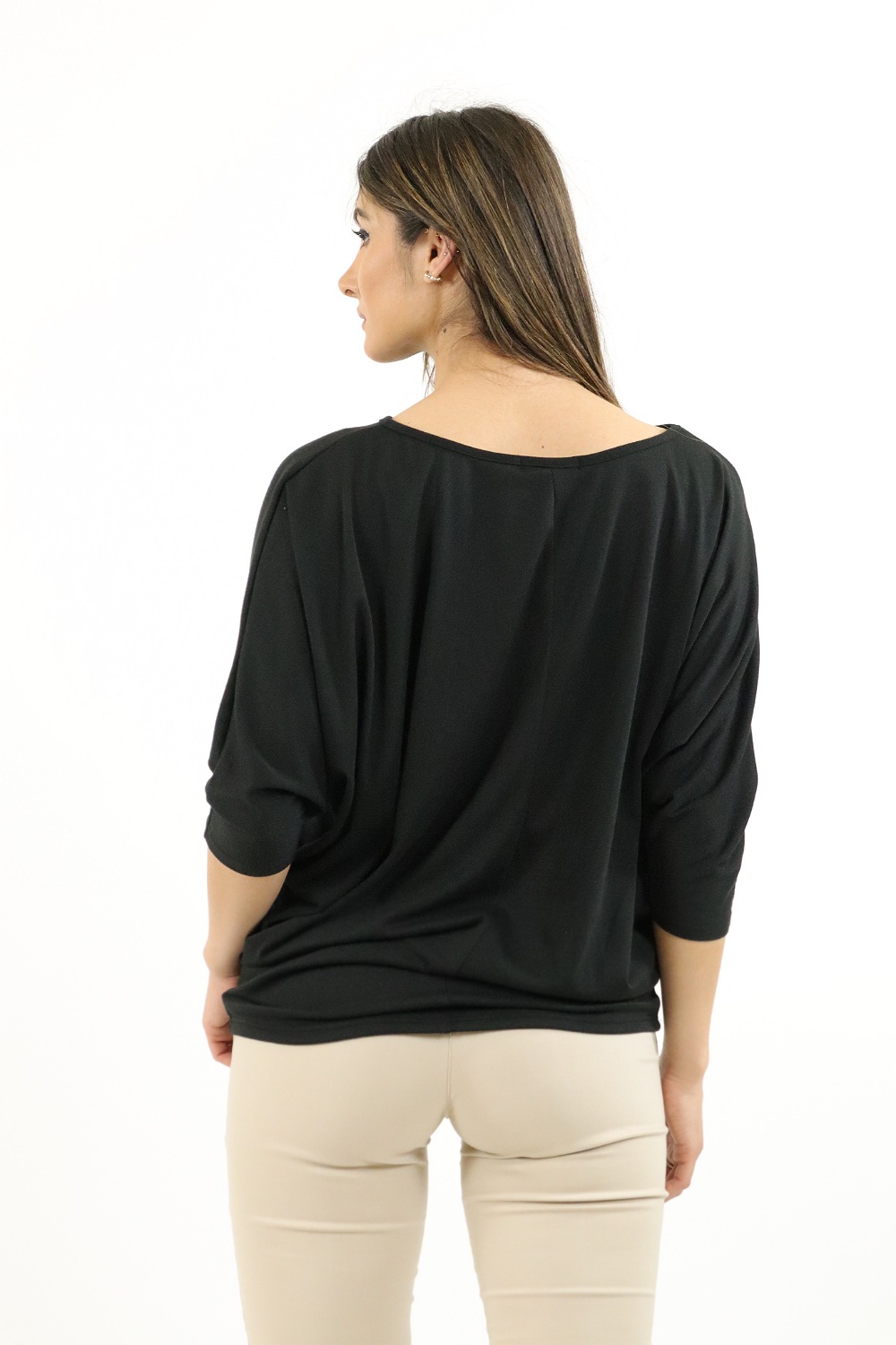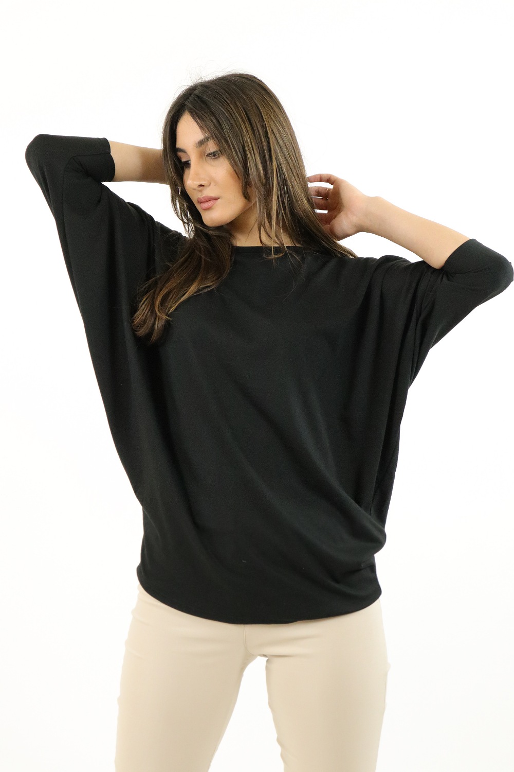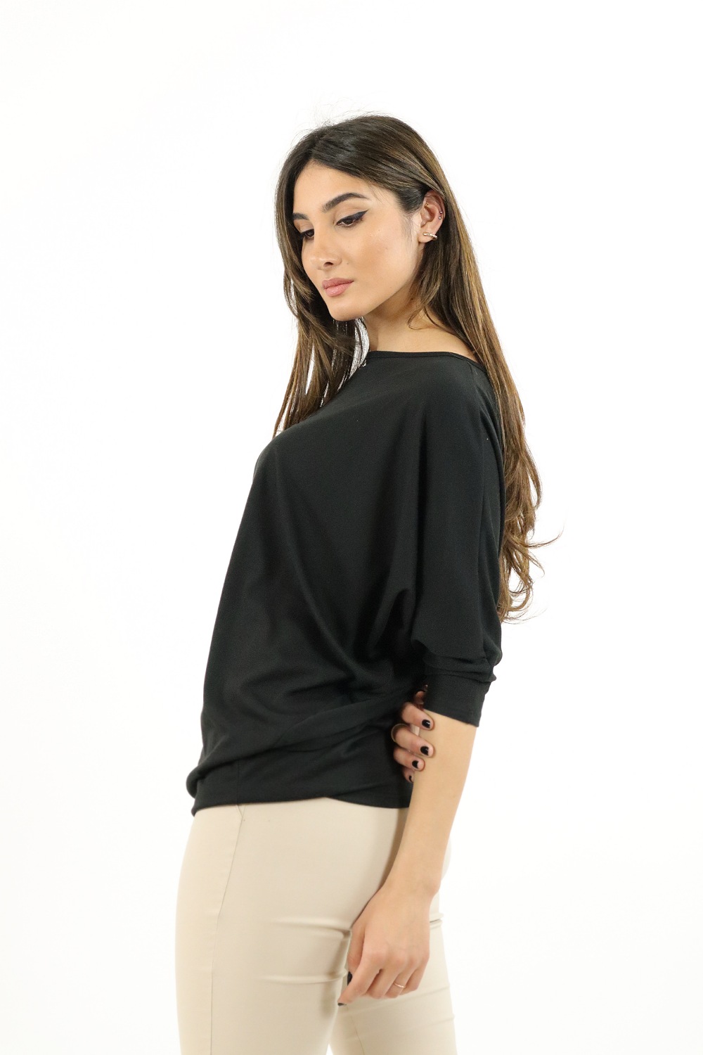 Maglia in Viscosa a Pipistrello con Collana – Colore Nero
