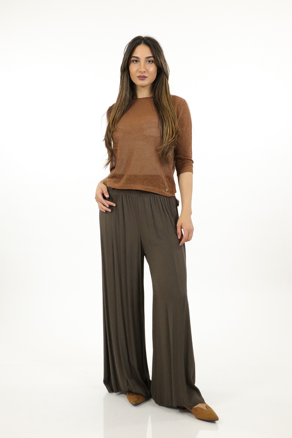 Pantalone in Viscosa con Vestibilità a Palazzo – Colore Moro